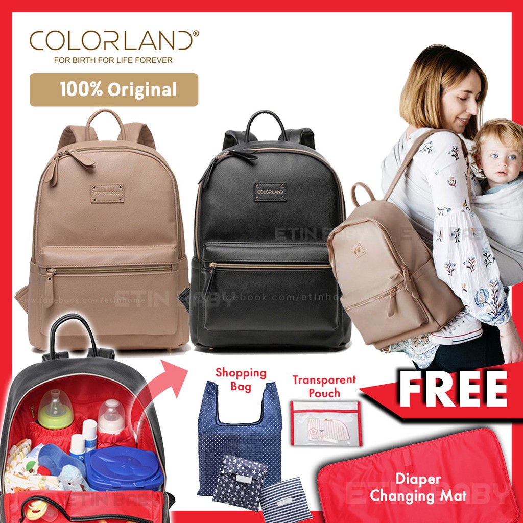 Colorland Pu Leather Diaper Backpack Free 3 Gifts Trendy Mommy Diaper Bag Nappy Backpack Diaper Changing Bag Shopee Malaysia